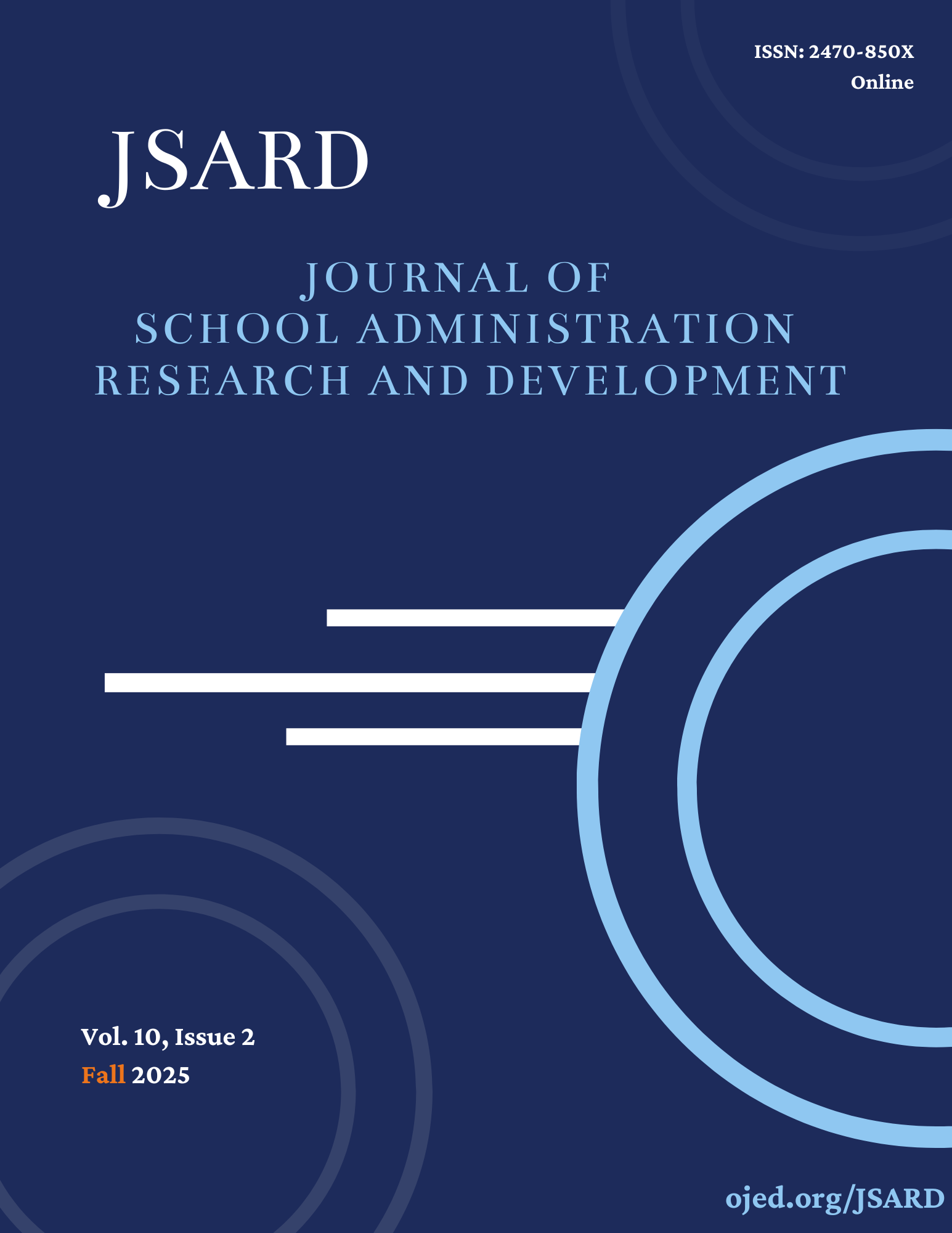Vol. 5 No. 1 (2020)The Journal of School Administration Research and Development (JSARD) (ISSN: 2470-850X, online & ISSN: 2470-8496, print) is an open-access, peer-reviewed academic journal that supports the development and dissemination of research and scholarship in the area of K-12 school administration and leadership.