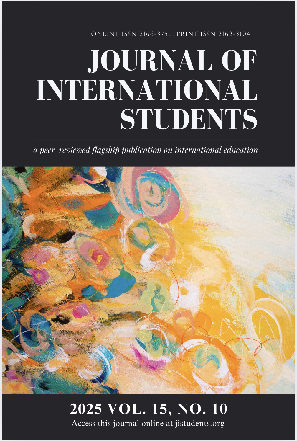 Vol. 15 No. 6 (2025)This volume of the Journal of International Students (2025 Vol. 15, No. 6) brings together a distinguished collection of peer-reviewed research articles that explore the complex realities of international student experiences in a rapidly changing global context. Addressing themes such as post-pandemic recovery, digital citizenship, intercultural engagement, and migration decision-making, the issue offers a diverse and globally representative set of studies from the United States, Australia, South Korea, Denmark, and beyond. Highlights include investigations into culturally responsive pedagogy in U.S. classrooms, the role of WeChat in shaping academic and social practices, and the resilience of Nepali students navigating marginalization in Denmark. With a focus on student voices, digital narratives, and institutional adaptation, this volume provides critical insights for scholars, educators, and policymakers committed to advancing inclusive, equitable, and globally informed higher education.