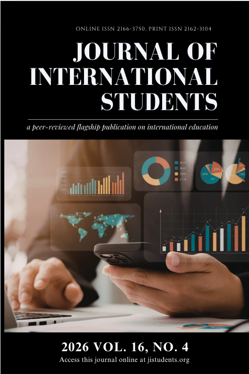 Vol. 16 No. 4 (2026)Vol. 16 No. 4 (2026) of the Journal of International Students showcases cutting-edge, globally engaged scholarship that speaks to the emotional, academic, and structural realities of international students worldwide. Through diverse methodologies and contexts, the articles examine resilience, belonging, mobility, global citizenship, faculty support, and the growing influence of technology and AI in higher education. Collectively, this volume advances research that is not only rigorous and timely, but also deeply responsive to the lived experiences of students navigating education across borders. This issue features 31 authors representing 25 institutions across 6 countries, reflecting the breadth, depth, and collaborative strength of contemporary international student research.