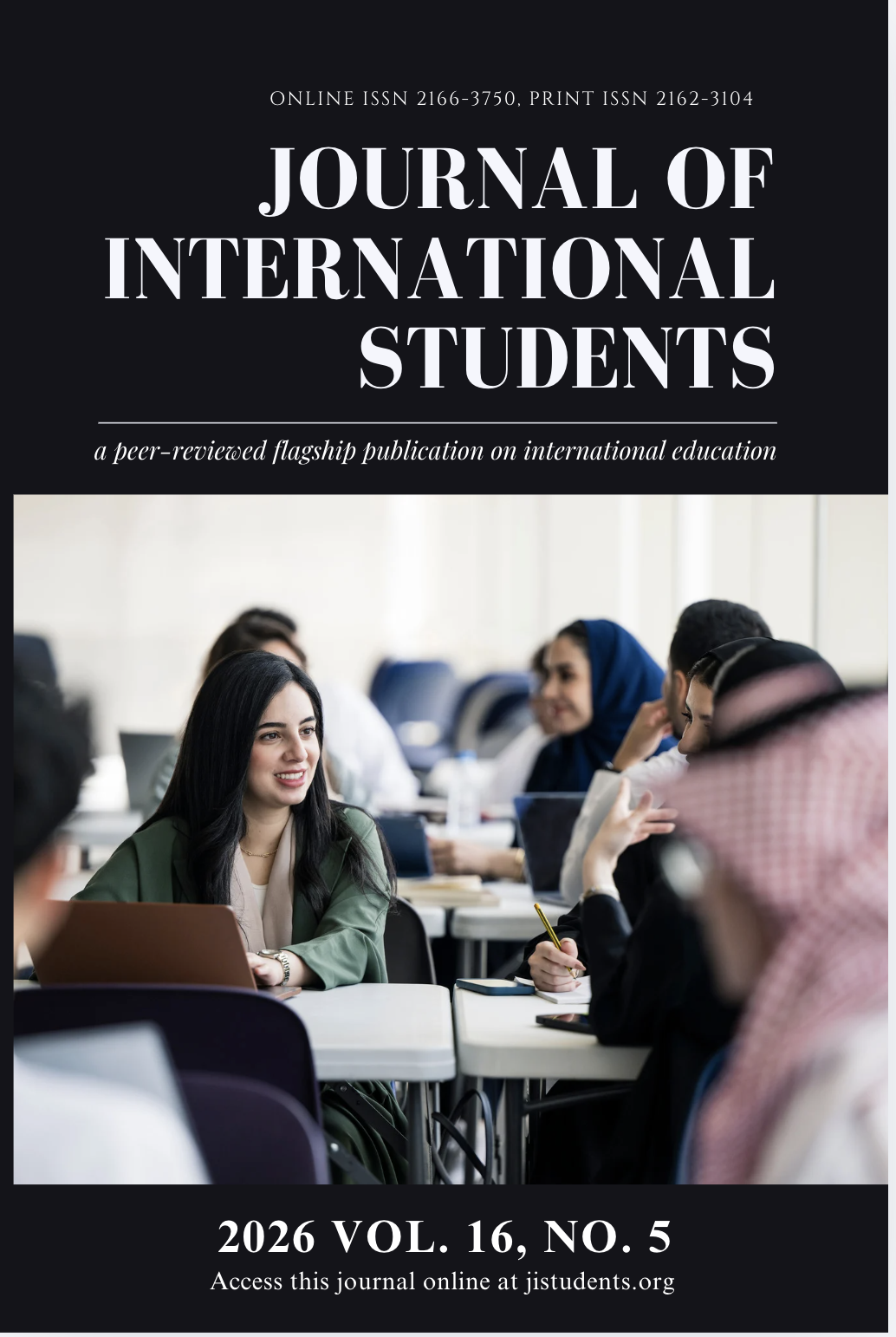 Vol. 16 No. 1 (2026)Journal of International Students – Vol. 16, No. 1 (2026) features contributions from 26 authors representing 12 universities across 10 countries, reflecting the journal’s strong commitment to globally collaborative and cross-institutional scholarship. This edition includes a rich, globally grounded collection of research that advances understanding of international student experiences across learning, mobility, identity, and well-being. Spanning contexts in Thailand, Malaysia, Saudi Arabia, Singapore, Indonesia, Australia, the UAE, the USA, the UK, and Türkiye, this issue examines how international students navigate intercultural learning, motivation, language, social support, mobility aspirations, and psychological challenges across diverse higher education systems. Through empirical studies, meta-analysis, and case-based inquiry, the articles illuminate how institutional structures, digital environments, and global imaginaries shape students’ academic engagement and personal development.