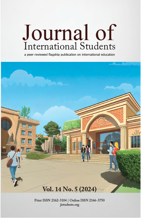 Vol. 13 No. 4 (2023)Journal of International Students (JIS) is a quarterly peer-reviewed flagship publication on international education (Print ISSN 2162-3104 & Online ISSN 2166-3750). As an independent multilingual journal based in the United States, we aim to actively speak to the most consequential conversations in international and global education. The journal publishes research on international students in secondary and tertiary education institutions, as well as displaced, migrant, and other immigrant student populations, including refugees, DACA holders, temporary protected status, and undocumented minorities. We also publish research on international faculty, teaching assistants, and postdoctoral researchers.