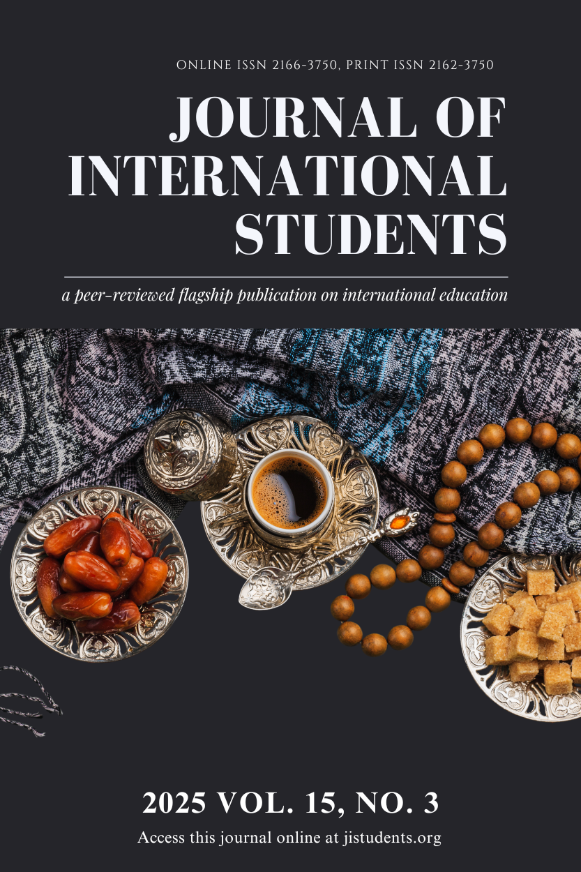 Vol. 15 No. 3 (2025)This issue of the Journal of International Students, edited by Alean Al-Krenawi (Algoma University) presents an in-depth exploration of the experiences of Muslim students and scholars in Western academic environments. The volume includes a series of research articles investigating key themes such as language barriers, cultural adaptation, racialization, and the psychological well-being of Muslim international students. Topics covered range from the experiences of Arab-Bedouin students in Israeli academia to the factors influencing Muslim students' decisions to study abroad in Northern Cyprus and the United States. The contributions in this volume come from 28 authors and represent 9 countries: Jordan, Israel, Canada, the USA, Northern Cyprus, Libya, Australia, and Indonesia. The research featured in this volume provides valuable insights into the challenges and successes of Muslim students and scholars in Western institutions. It contributes to the broader conversation on diversity, inclusion, and equity in higher education.