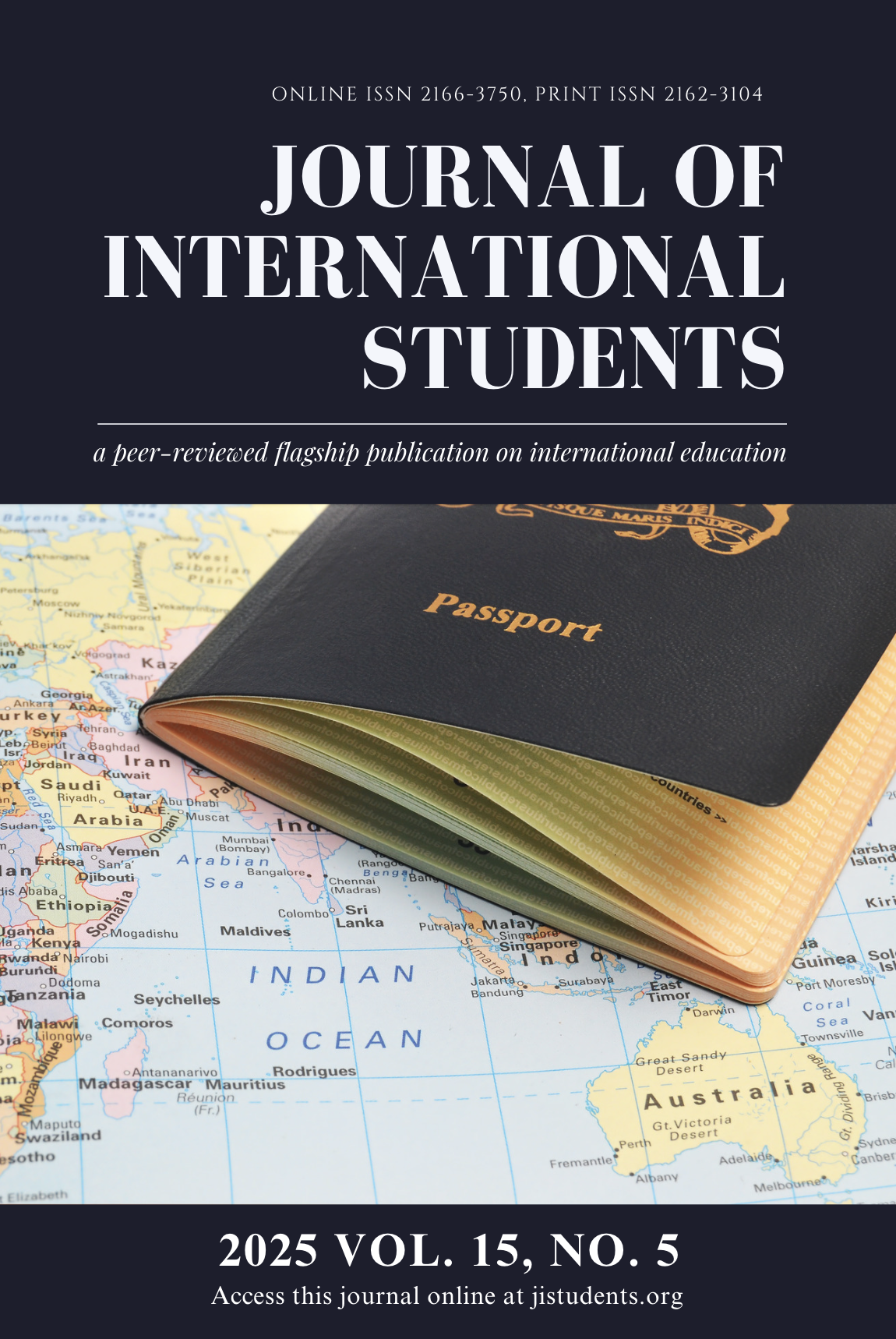 Vol. 15 No. 6 (2025)This volume of the Journal of International Students (2025 Vol. 15, No. 6) brings together a distinguished collection of peer-reviewed research articles that explore the complex realities of international student experiences in a rapidly changing global context. Addressing themes such as post-pandemic recovery, digital citizenship, intercultural engagement, and migration decision-making, the issue offers a diverse and globally representative set of studies from the United States, Australia, South Korea, Denmark, and beyond. Highlights include investigations into culturally responsive pedagogy in U.S. classrooms, the role of WeChat in shaping academic and social practices, and the resilience of Nepali students navigating marginalization in Denmark. With a focus on student voices, digital narratives, and institutional adaptation, this volume provides critical insights for scholars, educators, and policymakers committed to advancing inclusive, equitable, and globally informed higher education.